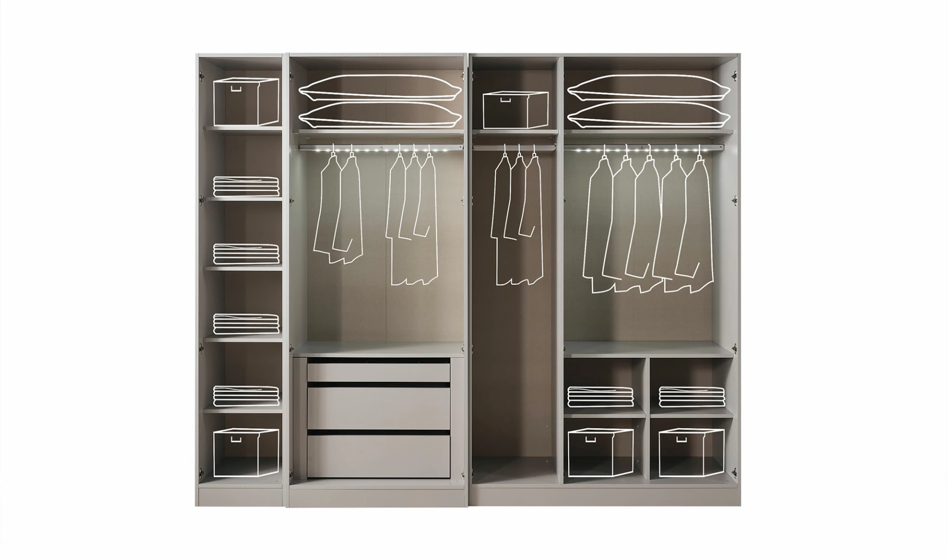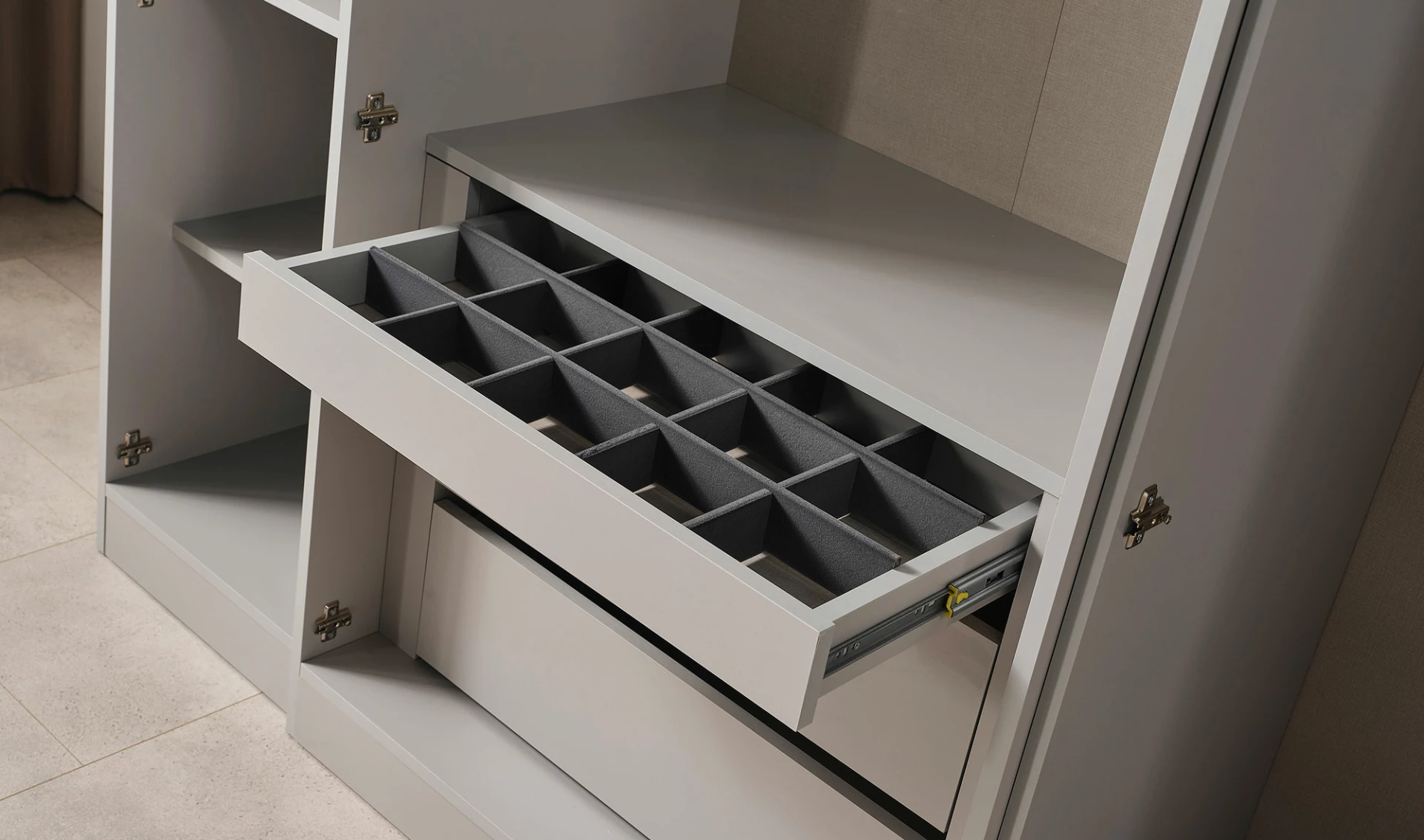 Galaxy Yatak Odası'nda bulunan geniş çekmeceler, dolaplar ve raflar, eşyalarınızı düzenli bir şekilde saklamanıza olanak tanır. Giysilerinizi, aksesuarlarınızı ve diğer eşyalarınızı kolayca erişebileceğiniz yerlerde saklayabilirsiniz. Bu sayede, odanız her zaman düzenli ve ferah kalır.