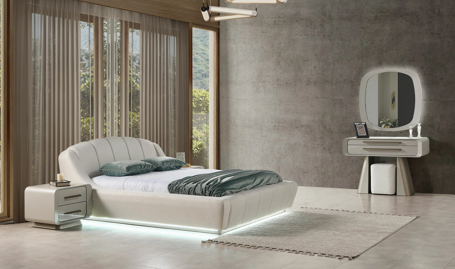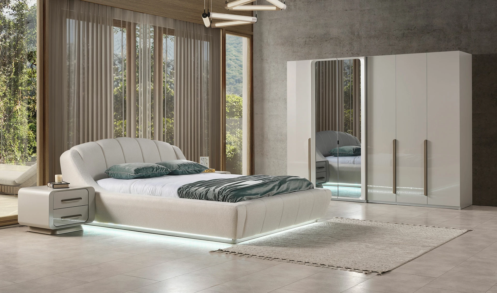 Modern çizgilerle tasarlanan Galaxy Yatak Odası, zarif detaylarıyla göz alıcı bir görünüm sunar. Minimalist yaklaşımla tasarlanmış mobilyalar, yaşam alanınıza ferahlık ve şıklık katar. Odada bulunan her parça, estetik ve fonksiyonelliği bir araya getirerek mükemmel bir uyum sağlar.